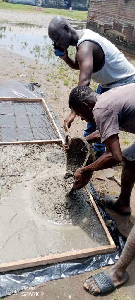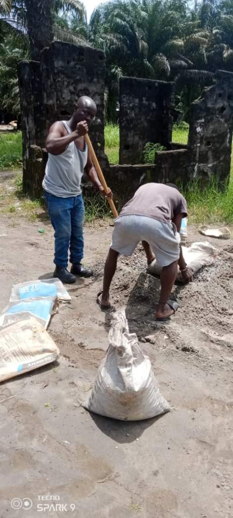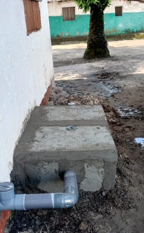 So far, the necessary cuts and chiseling have been done in the building, several pipes have been appropriately installed, the bio-digester septic tank has been dug beside the school building, the appropriate fittings for the bio-digester have been fixed, blocks have been laid for the septic tank, and so forth.