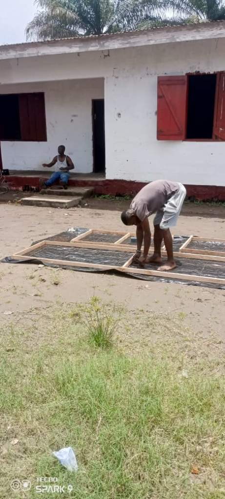 We were able to raise some money locally to buy some planks to fix door frames and two temporary doors for the two compartments. We also bought some tissue, as well as buckets to be used as containers for water.