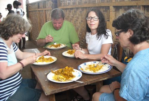 Elisabeth, Anders,Lena and Marianne trying the palm butter rice, a traditional food