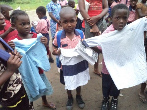 Children displaying their clothes