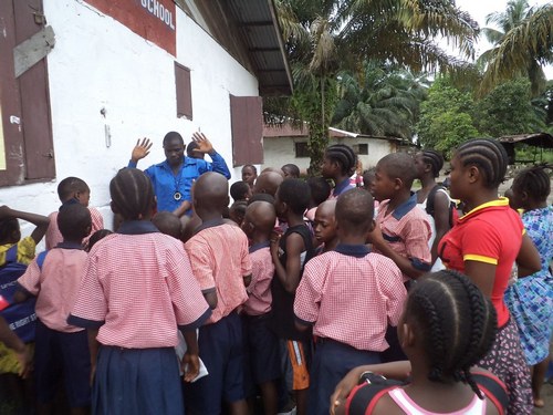 Children listening to Mr. Joseph Goffa, Vice principal for Student affairs