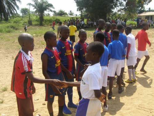 Our boys shaking hands with the boys of Kornonia