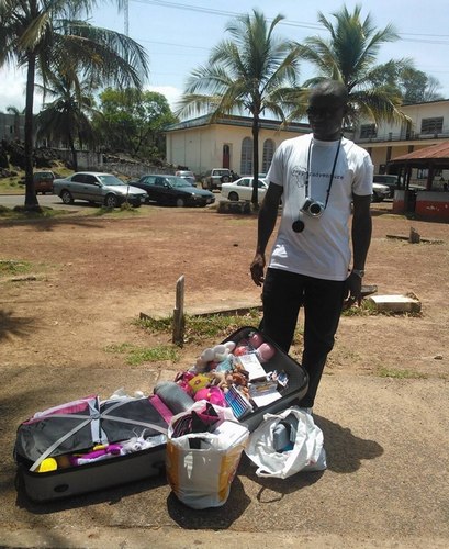Paul with the gifts on the campus of the University of Liberia