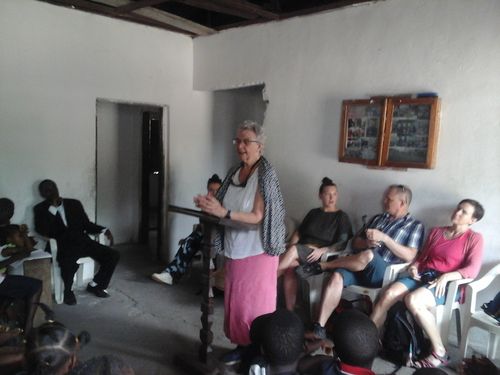 Mrs. Lotten Zetterstrom speaking at the short in-door program held in honor of the guests
