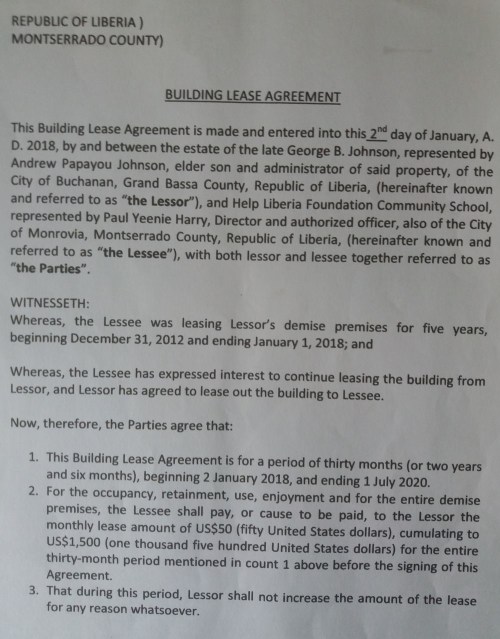With great joy and appreciation, we – on behalf of the children, staff, and parents of Help Liberia Foundation Community School – would like to inform all of you who helped us with last year’s fundraising that the rent for the school has been paid. It was paid on January 2, 2018.