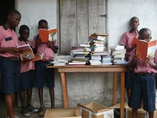 Students with donated books